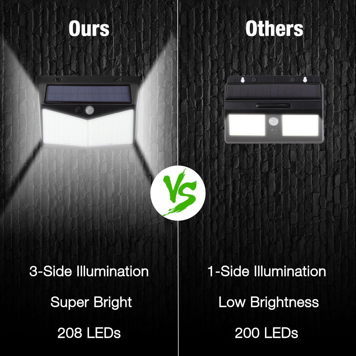 3.270° wide angle: Our solar lights are four-sided rather than three-sided. Our upgraded night light will cover nearly three times the area than the old one. The lighting angle can reach up to 270°.