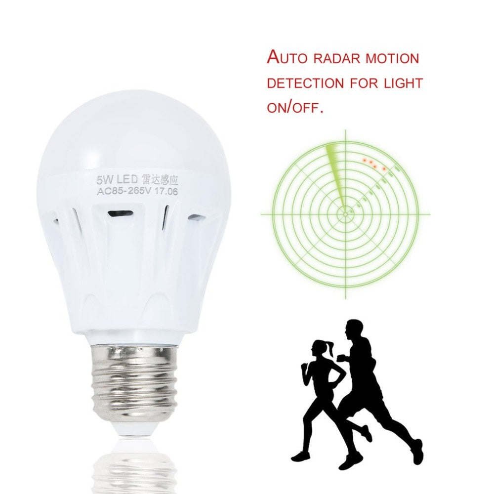 • WIDE APPLICATION: Outdoor motion sensor led bulb is 5 watt(50W Equivalent); the speed of reflection is good and concealment is good. The radar bulb with motion sensor suitable for indoor and outdoor. Such as household corridor; hallway; passage; garage; stair; step; toilets; office; coffee house; shopping center; exhibition hall; hospital etc. Ideal for multiple places you would like to decorate